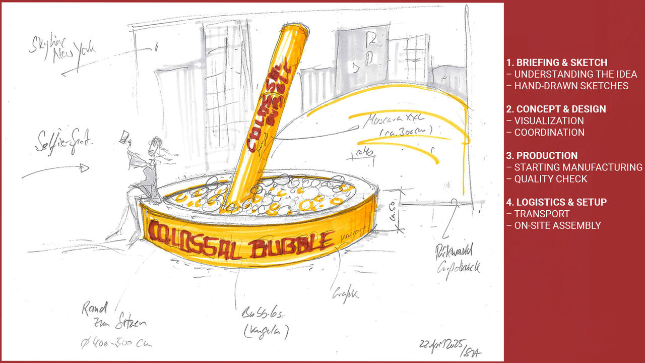 When internationally renowned makeup manufacturer L'Oreal launched its new mascara in Europe, the space in front of the Uber Arena in Berlin became a stage, and we were allowed to be part of this staging. Working with the agency bplusd, we quickly created an attention-grabbing brand object that fits perfectly with the campaign. The challenge: only about six weeks from the first briefing to the setup. No room for experimentation – only for reliability, speed, and clear communication.