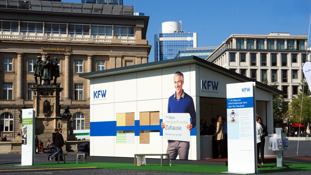 Um das Thema „energieeffizientes Bauen und Sanieren" und die damit verbundenen Förder- und Finanzierungsmöglichkeiten in mehreren Städten zu präsentieren, startete die Förderbank ihre Roadshow mit einem mobilen Haus von Isinger + Merz.